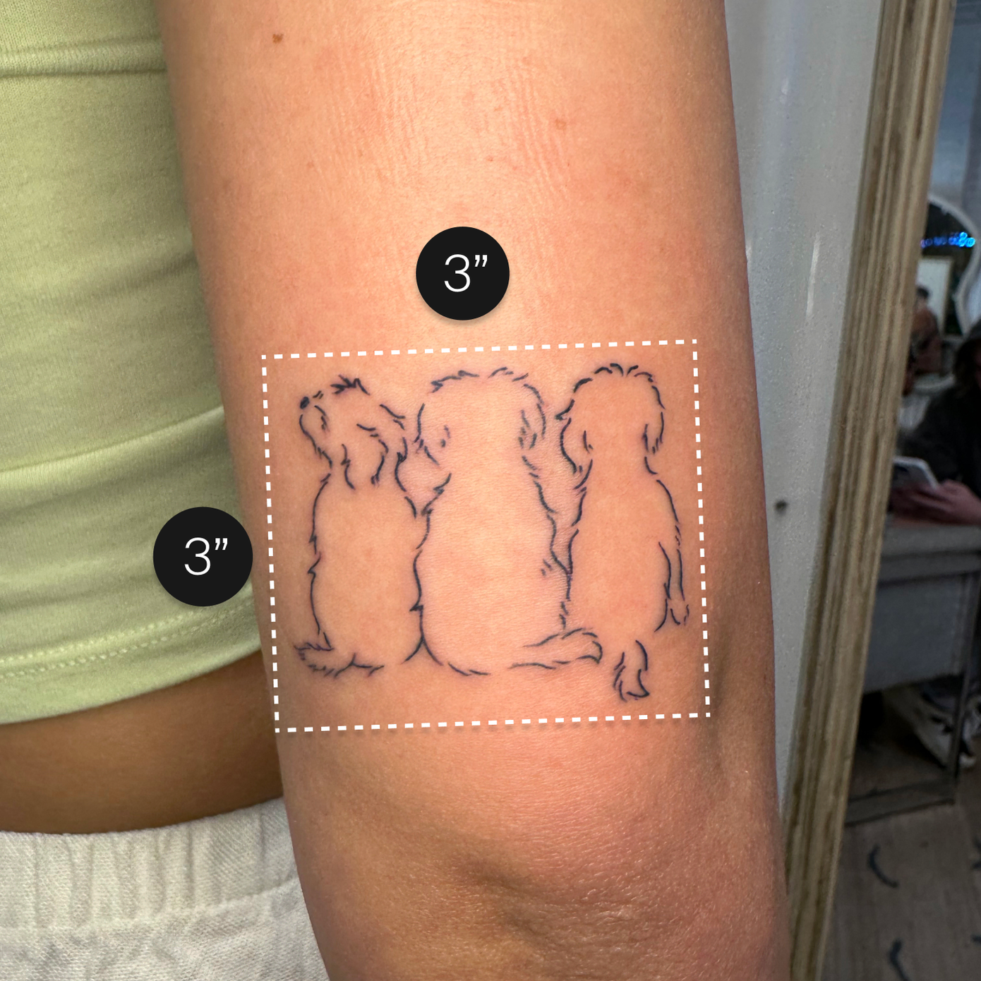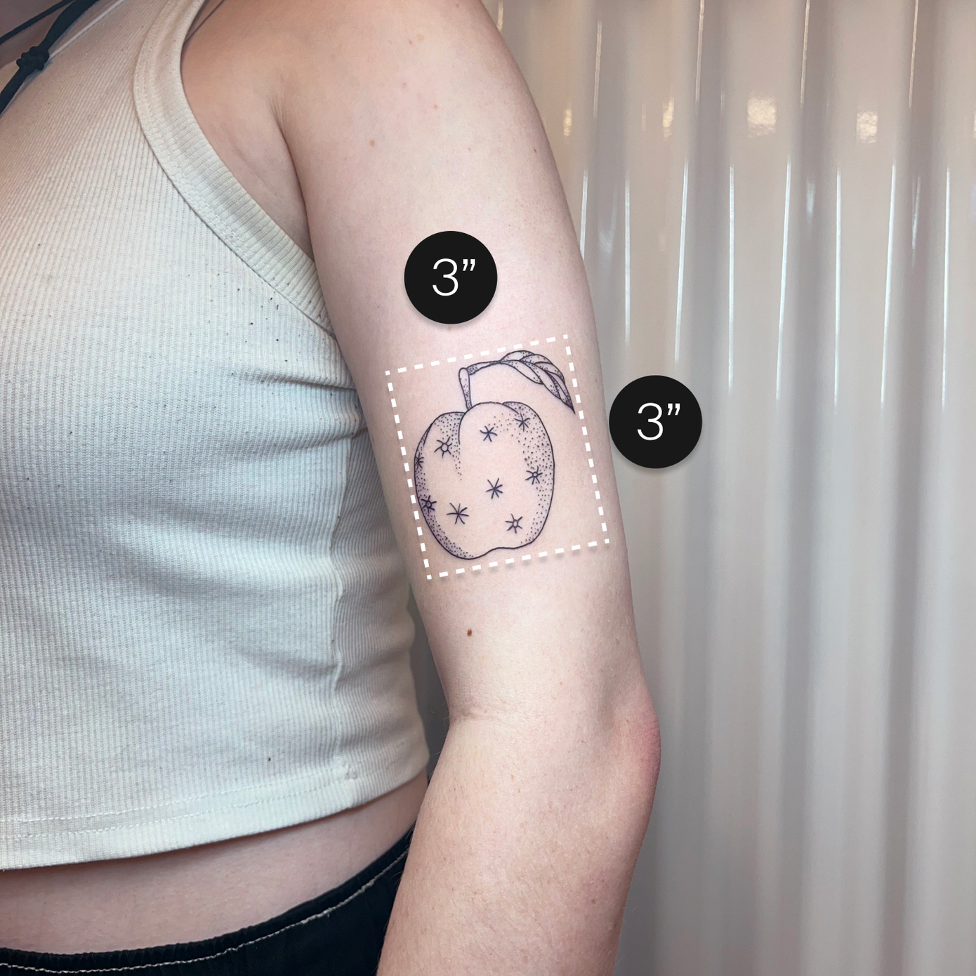 That’s why every appointment includes a free consultation where your artist will present a few different size and placement options for you to try. We include size guidelines to help guide you but you’re not locked into place. Don’t get too hung up on that 1/2 inch difference if you’re torn between choosing a size since we can adjust this in studio.