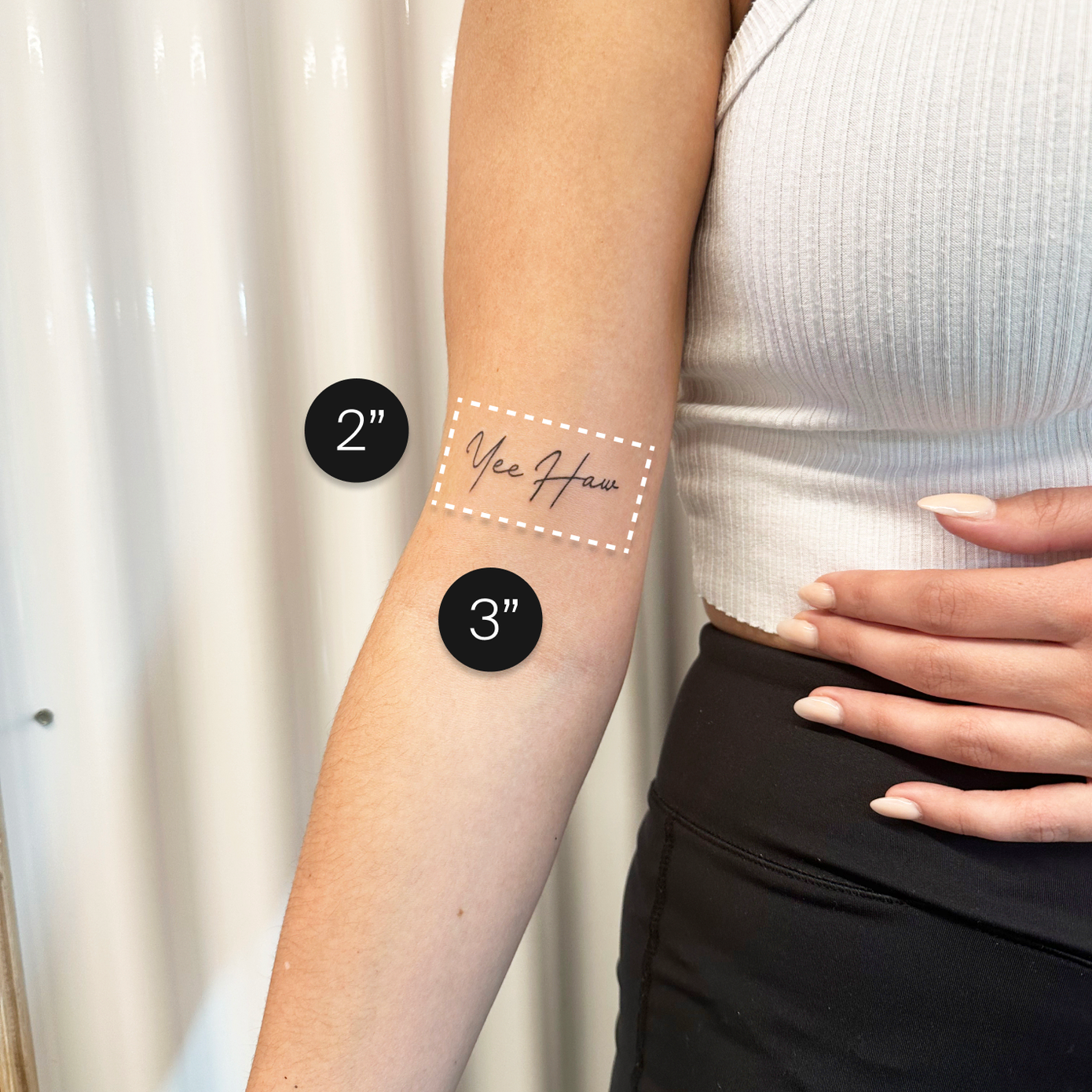 No worries if you’re on the fence about your size or product type. You’ll finalize this in the studio during your consultation before the tattooing begins.