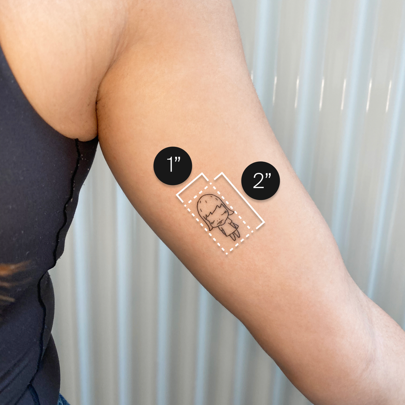 That’s why every appointment includes a free consultation where your artist will present a few different sizes and placement options for you to try. We include size guidelines to help you but you’re not locked into place. Don’t get too hung up on that 1/2 inch difference if you’re torn between choosing a size since we can adjust this in the studio.